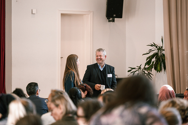 In seinem Vortrag zeigte Prof. Dr. Bernd Meyer, dass Verständigung nicht alles ist, aber dass ohne Verständigungsmöglichkeiten alles nichts ist. Es wurden Möglichkeiten aufgezeigt, wie Sprachbarrieren überwunden werden können und die Kommunikation mit Personen mit geringen Deutschkenntnissen gelingen kann. Vorgestellt wurden verschiedene Möglichkeiten: Sprachmittlungsdienste, mehrsprachige Begleitpersonen und Kolleg*innen oder auch Übersetzungsapps. Wichtig ist, genau zu prüfen, wie gut diese Hilfen im Alltag funktionieren – damit Missverständnisse und Kommunikationsbrüche vermieden werden.
