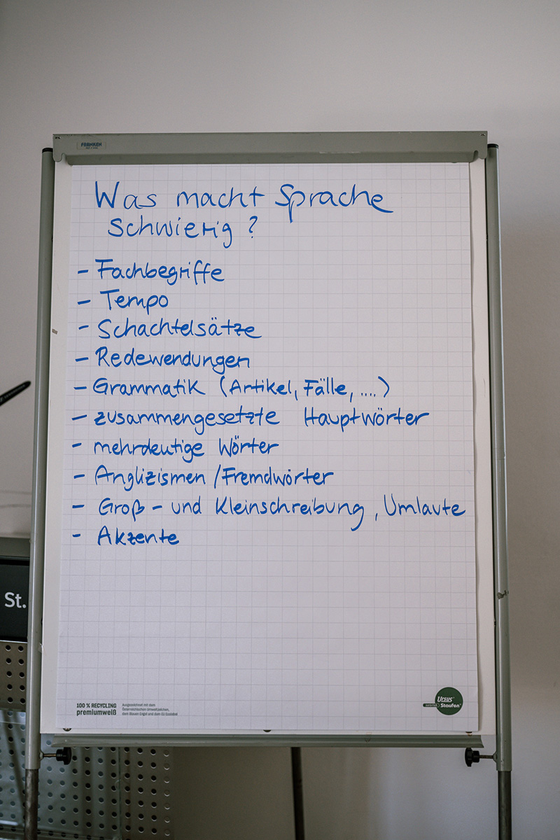 Lena Jehle sprach in ihrem Workshop die Grundregeln Einfacher Sprache sowie Möglichkeiten und Herausforderung der Anwendung an. Im Anschluss konnten die Teilnehmenden in Übungen das Erlernte umsetzen.